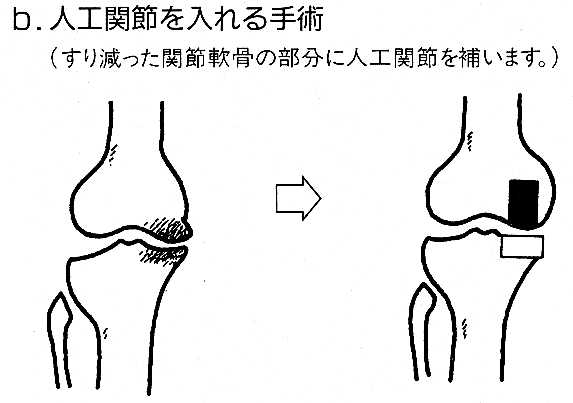 とも破壊程度のひどい方に、行ないます。手術すれば、膝の痛みはほとんどなくなります。